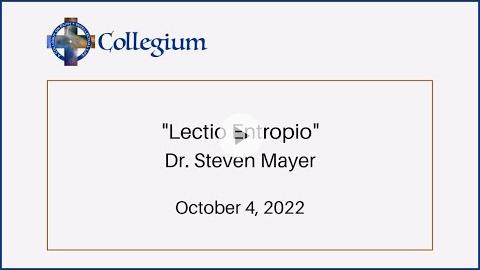 - Dr. Steven Mayer: Lectio Entropio - October 2 - 3, 2022