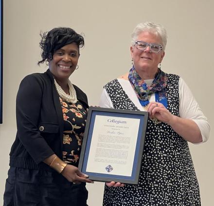 This past weekend, four-time mentor Doshie Piper received the 2025 Collegium Visionary Award at a special luncheon gathering with her colleagues at University of the Incarnate Word in San Antonio Texas, several of whom were Collegium alums. Doshie accepted this award to rousing applause and a strong sense of solidarity with the entire community. Among the reasons for Doshie’s selection, her dean noted the numerous ways she has brought Collegium home to her institution, including drawing upon the prophetic and sacramental imaginations to help re-vitalize the Core Curriculum at UIWTX by highlighting vital connections among the humanities, social sciences and professional schools. Her citation highlights the creative ways she has drawn upon lessons learned at Collegium to create a vibrant partnership with the Nehemiah Community Re-Entry Project.